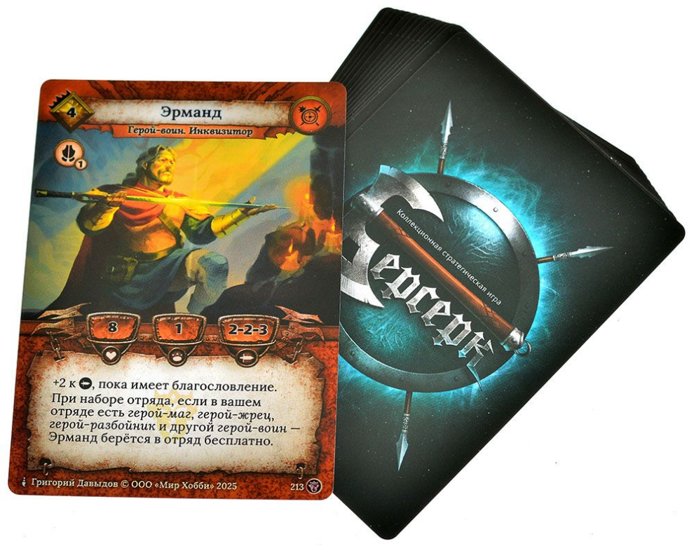 «Чемпионы Лаара» — это коллекционный набор из 16 фольгированных карт, каждая из которых — по сути своей, маленькое произведение искусства. Знакомые герои из «Семян раздора», «Ложных богов» и «Пути хранителей» предстают в совершенно новых иллюстрациях, созданных Григорием Давыдовым в едином эпическом стиле. И да, они полностью легальны на турнирах — так что ваших противников ослепит не только ваше мастерство, но и блеск амуниции ваших чемпионов.