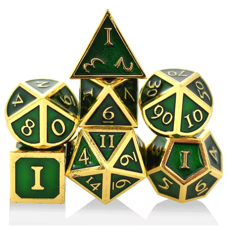 Дайсы металлические (изумрудный цвет) в мешочке
