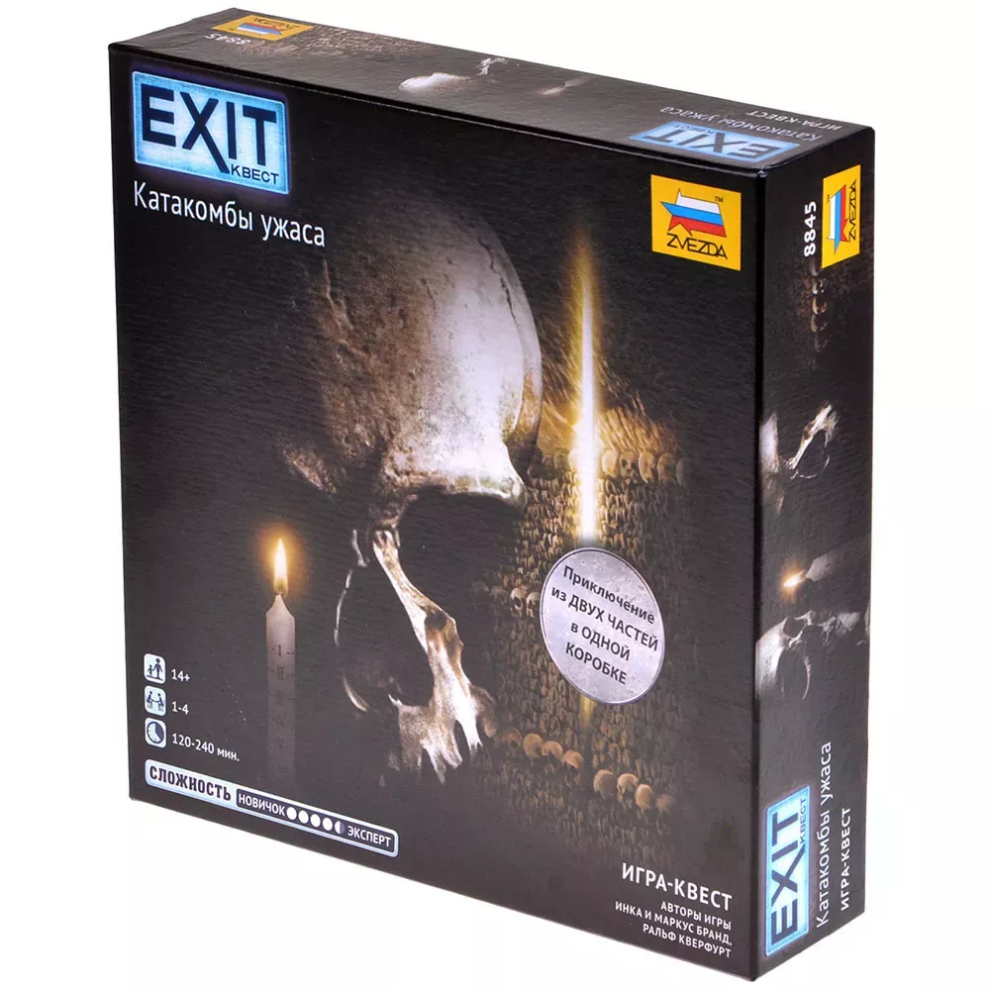 «EXIT-Квест: Катакомбы ужаса» — это настольная игра, которая отправит вас и ваших друзей в те самые мистические и пугающие подземелья Парижа. Вам предстоит разыскать своего старого товарища, который при загадочных обстоятельствах пропал в катакомбах. Сможете ли вы вовремя отыскать своего друга, чтобы спасти его от ужасных секретов тьмы, до которых он уже успел добраться?