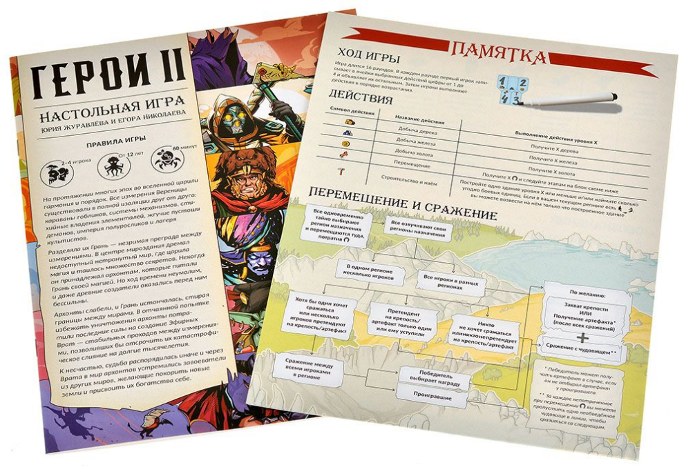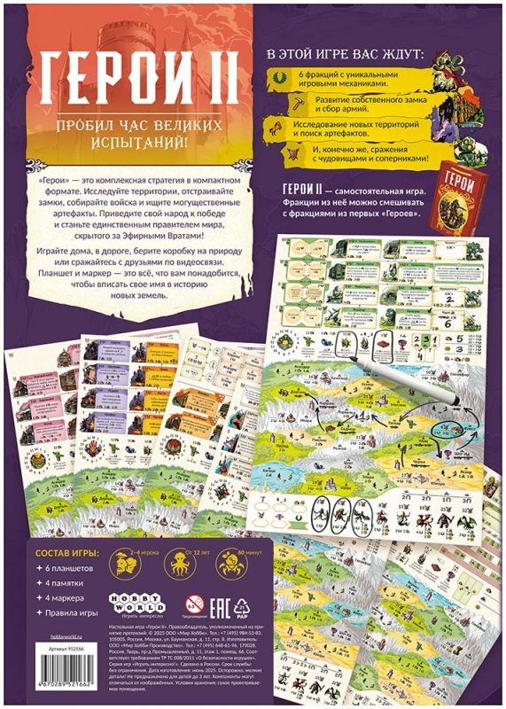Внимание! Внешний вид коробок игры разнообразен, но их содержимое одинаковое. Также обращаем ваше внимание, что «Герои II» — самостоятельная игра. Фракции из неё можно смешивать с фракциями из первых «Героев».