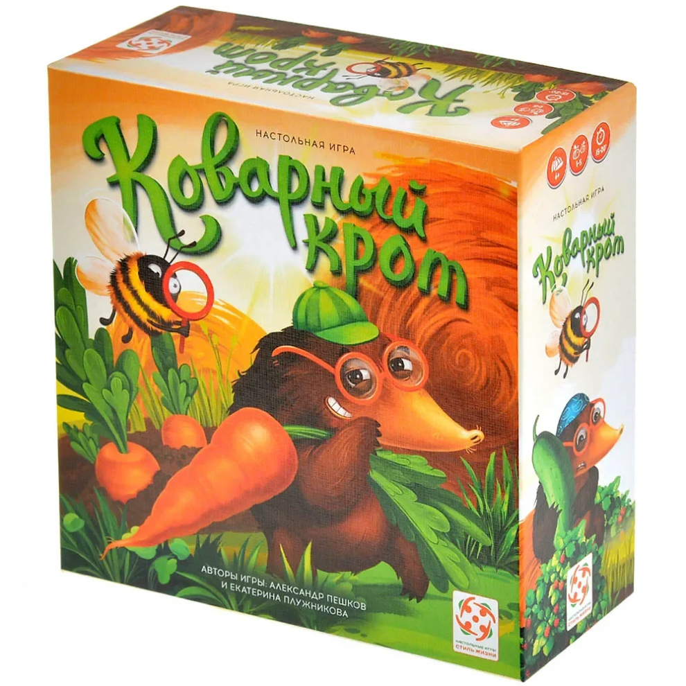 «Коварный крот» — это настольная игра для самых проницательных садоводов! Вам предстоит расследовать загадочные пропажи овощей с грядок. Ваша цель — вычислить, какой именно овощ он припрятал в этот раз. И в какой из своих многочисленных норок его спрятал! Главной особенностью игры является детективный геймплей, построенный на дедукции и внимании. Яркое игровое поле и очаровательные компоненты создают тёплую и уютную атмосферу, которая понравится и детям, и взрослым. Это идеальный способ весело и с пользой провести время в кругу семьи или друзей, развивая логическое мышление.