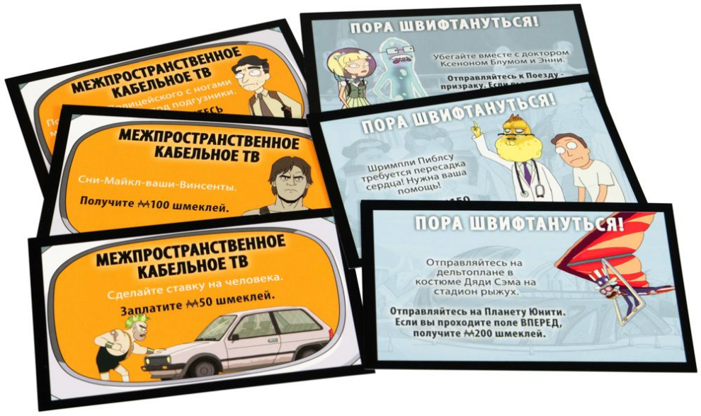 Приобретайте различную недвижимость из вселенной «Рика и Морти» (Анатомический парк, Блипс энд читц, Поезд-призрак и т. д.), стройте флубл-ходули и губл-коробки, получайте доходы с ренты, когда другие игроки попадут на вашу собственность! Не попадите в галактическую тюрьму, пользуйтесь межпростанственным кабельным ТВ и швифтанитесь наполную! Зарабатывайте миллионы шмеклей и скупите всю мультивселенную, загнав конкурентов в тупик и разорив их!
