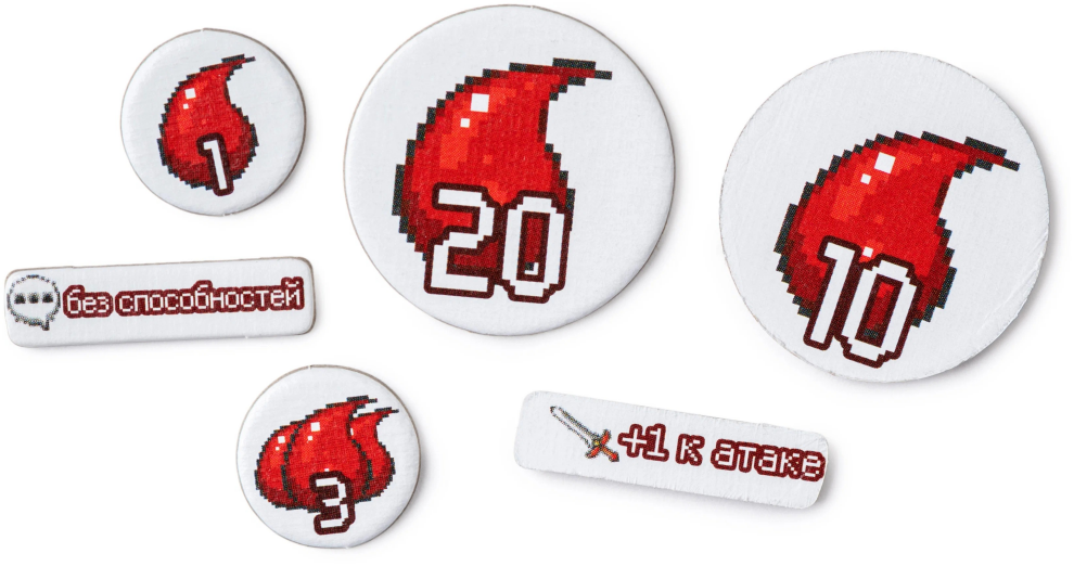 - 5 двухсторонних маленьких жетонов урона/рвения