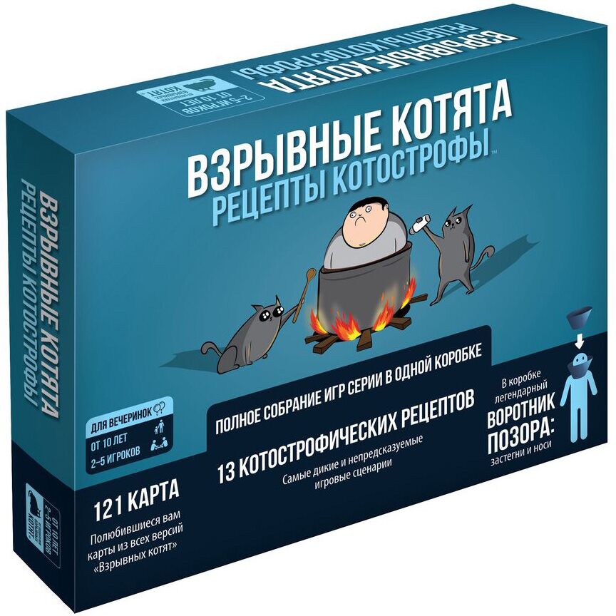 Популярная стратегическая версия «русской рулетки», заряженная котятами. Вы сможете играть с пушистым злом в самых неожиданных вариациях! В набор входит 121 карта из разных версий игры и дополнений. Идеально сбалансированный опыт как для новичков, так и для ценителей.